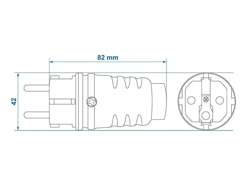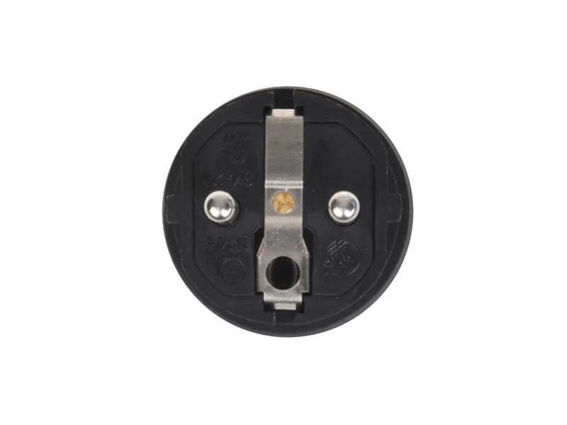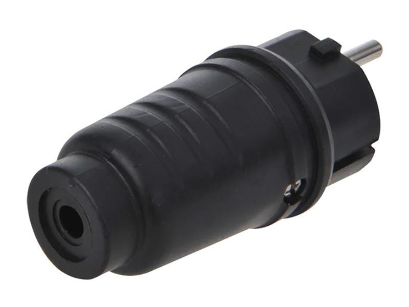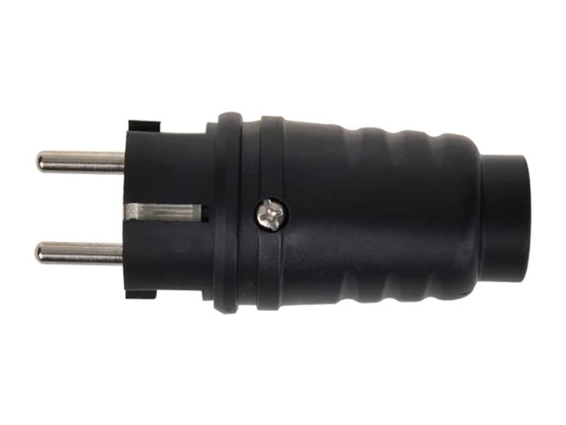 Wytrzymała i zapewniająca ochronę wtyczka prądowa typ SCHUKO, przeznaczony do montażu na kablu (np. kablach w gumie OW, ONPD).