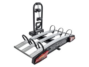 Bagażnik można bez trudu zamontować bezpośrednio na haku holowniczym i pomieści on trzy rowery (także typu fatbike lub elektryczne).