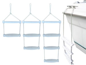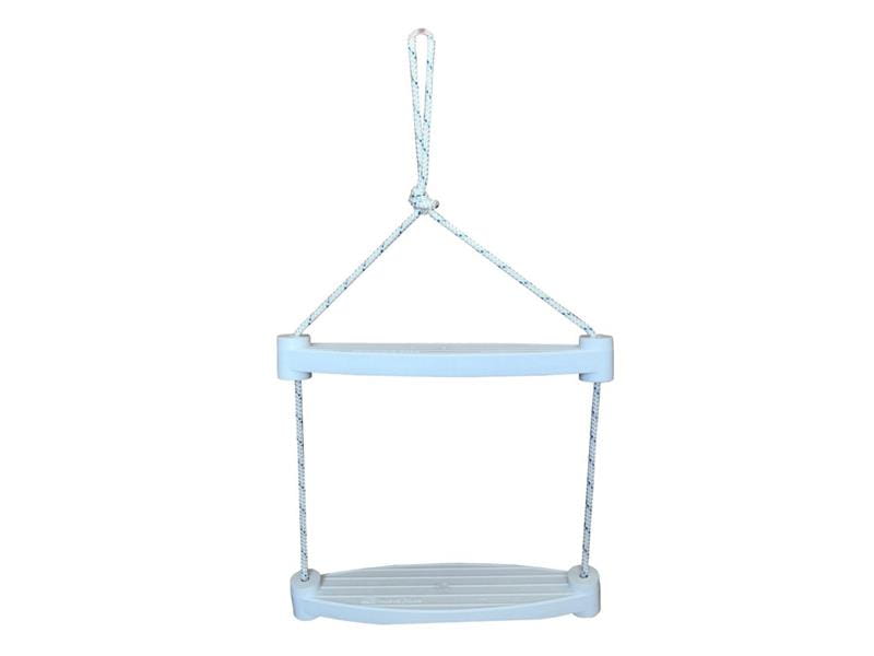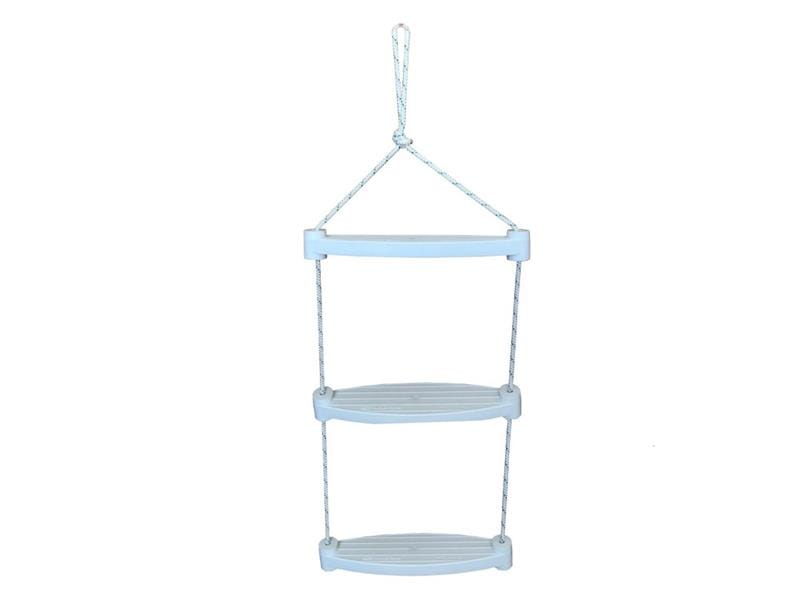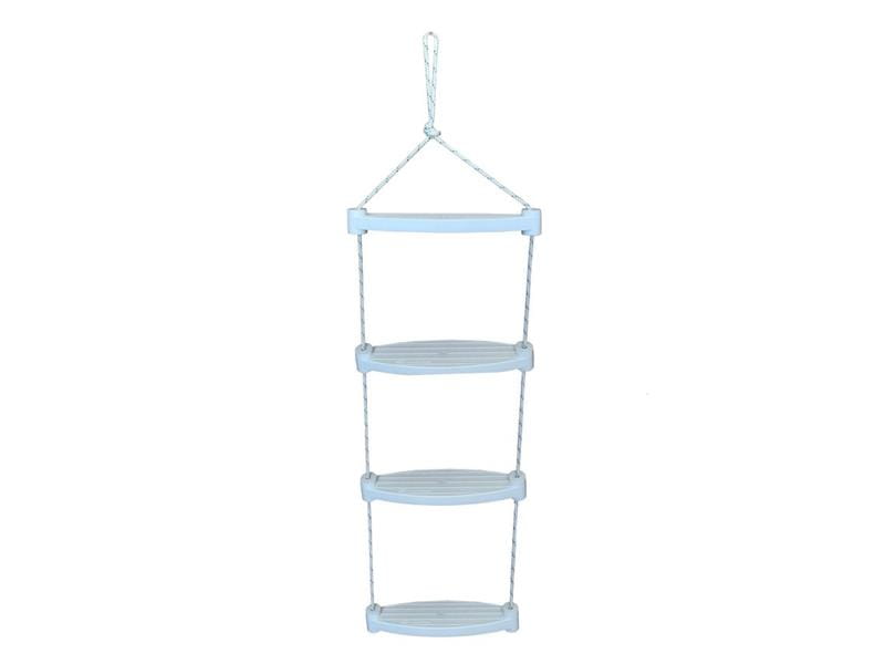 Drabinka sznurowa z białymi plastikowymi szczeblami.