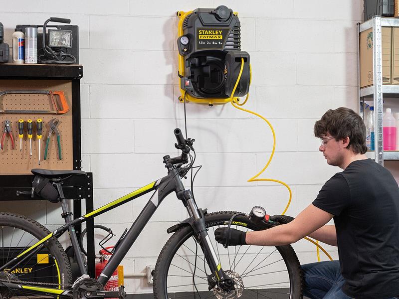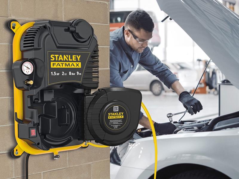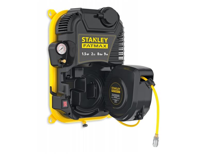 Kompresor elektryczny bezolejowy ścienny z przedłużaczem pneumatycznym - 2w1 - STANLEY FATMAX / Moc 1100W / Ciśnienie 8 Bar