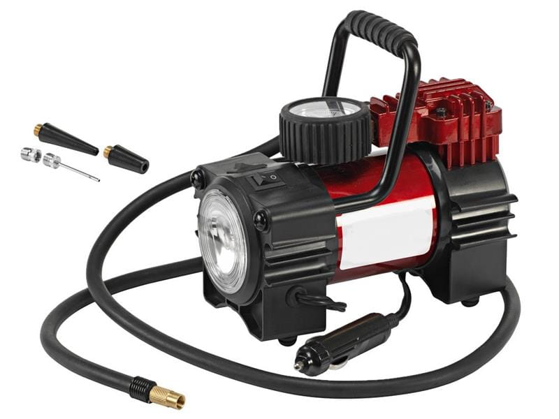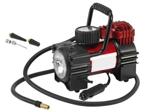 Wyjątkowo wygodny do przenoszenia i w użyciu kompresor samochodowy, który zasilany jest napięciem 12 V(DC) z gniazda zapalniczki w samochodzie.