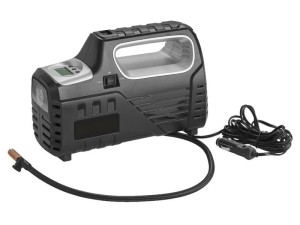 Kompaktowy kompresor zasilany zarówno napięciem 12 V(DC), jak i 230 V(AC), który można podłączyć do gniazdka zapalniczki 12 V w samochodzie 12 V lub zwykłego gniazdka elektrycznego 230 V.