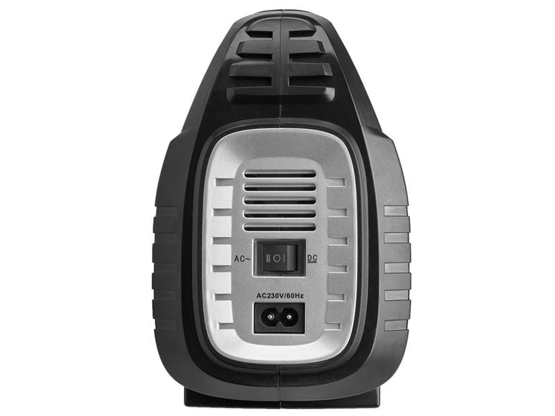 Dzięki przełącznikowi w obudowie kompresora masz możliwość szybkiej zmiany między 12 V(DC) zasilanie przez gniazdo samochodowe i 230 V(AC), czyli podłączenie do zwykłego gniazdka ściennego.