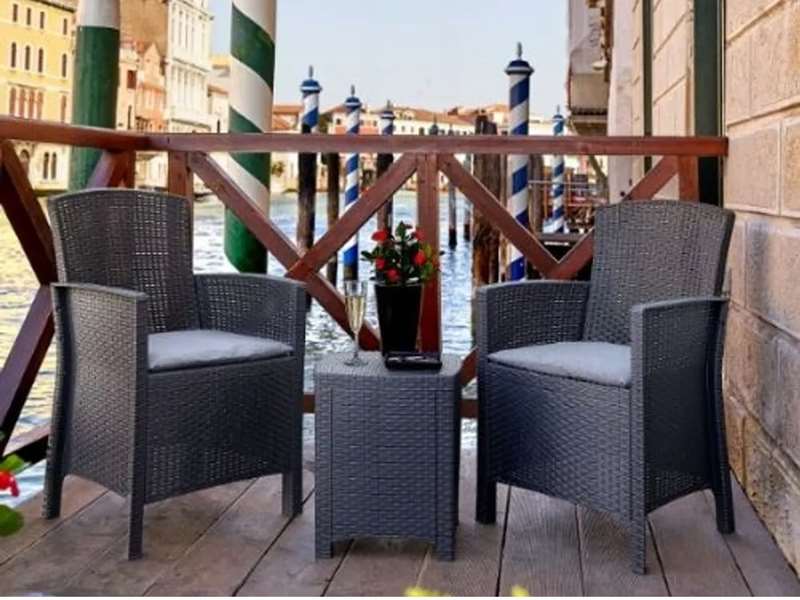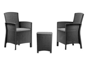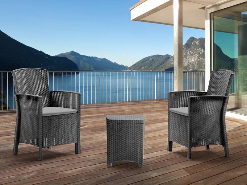 Meble ogrodowe - Meble balkonowe - Meble tarasowe - Zestaw 2 fotele + stolik / Materiał - Tworzywo sztuczne / Kolor - Ciemny brązy