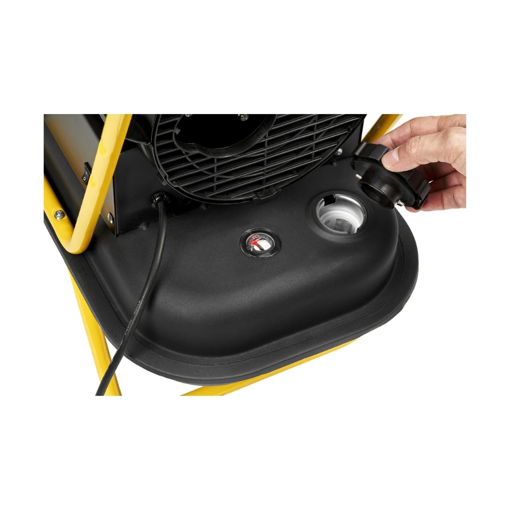Dzięki mocy grzewczej rzędu aż 20 kW umożliwia ogrzewanie powierzchni wynoszącej aż 220–300 m² – idealne rozwiązanie do większych warsztatów i miejsc budowy.