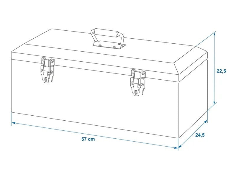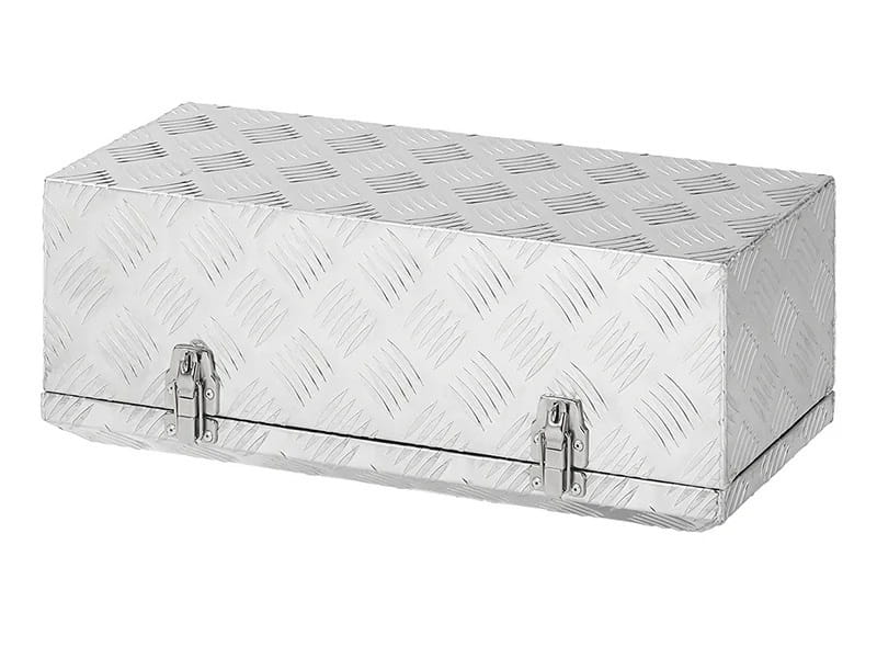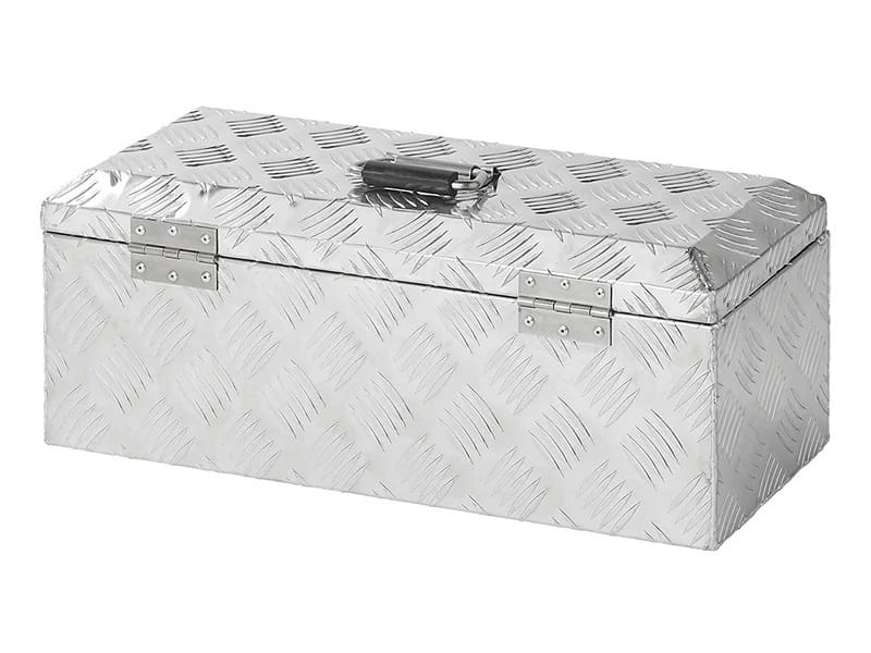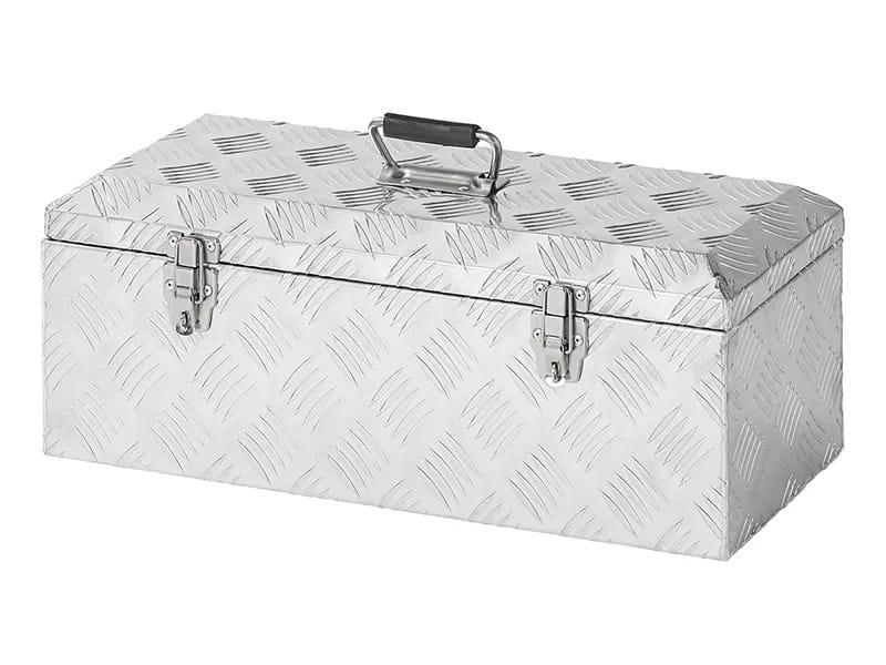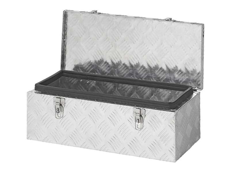Solidna, wytrzymała i praktyczna skrzynka na narzędzia wykonana z blachy aluminiowej ryflowanej z uszczelnieniem zamknięcia.
