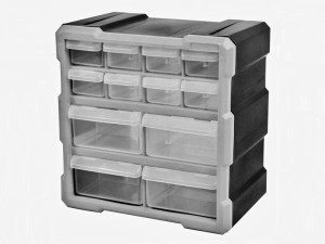 Szafka na drobne przedmioty z dwunastoma szufladami.