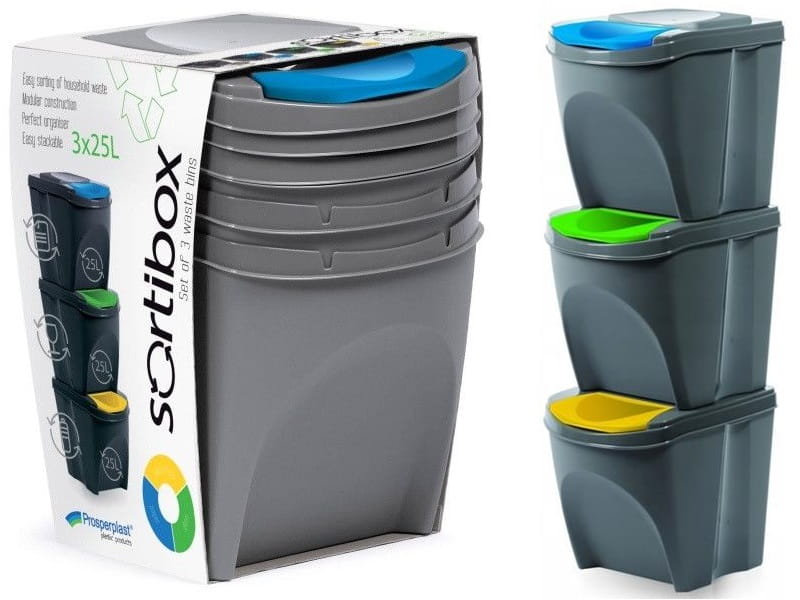 Zestaw pojemników do segregacji śmieci SortiBox 3 x 25L