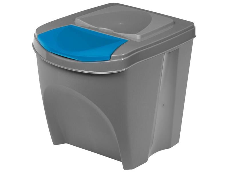 Każdy pojemnik posiada pokrywę w innym kolorze: niebieską, zieloną lub żółtą.